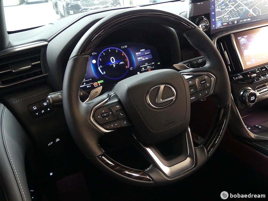 외관은 렉서스의 상징적인 대형 스핀들 그릴과 강인한 차체 비율로 존재감을 드러내며, 실내는 최고급 가죽, 우드